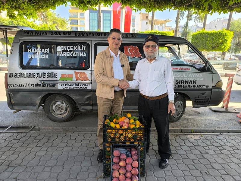 Denizli’de yaşayan 75 yaşındaki Muhammet Yılmaz, bahçesinde yetiştirdiği elmaları sınır hattında ve operasyon bölgesinde görev yapan Mehmetçiğe götürmesiyle biliniyor. Toplumda ‘Elmacı Dede’ olarak tanınan Yılmaz’ın elma bahçesi bu yıl don afetinden olumsuz etkilendi ve aracını doldurabilecek kadar elmayı bahçesinden toplayamadı. Aracıyla Denizli’den yola çıkan Yılmaz’ın aracının geri kalan kısmı Dörtyol Belediyesi ve Dörtyol Kaymakamlığı iş birliğiyle mandalinayla dolduruldu. Mehmetçiğe manevi destek vermek için Dörtyol’dan Hakkari’ye doğru yola çıkan Yılmaz’ı Dörtyol Belediye Başkanı Bahadır Amaç uğurladı.
