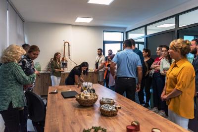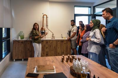 Bitki Müzesinde yer alan aromaterapi odasında devam eden etkinlik buhar destinasyonuyla Hambeles (Murt) yaprağından uçucu yağ elde edilmesi ile son buldu.