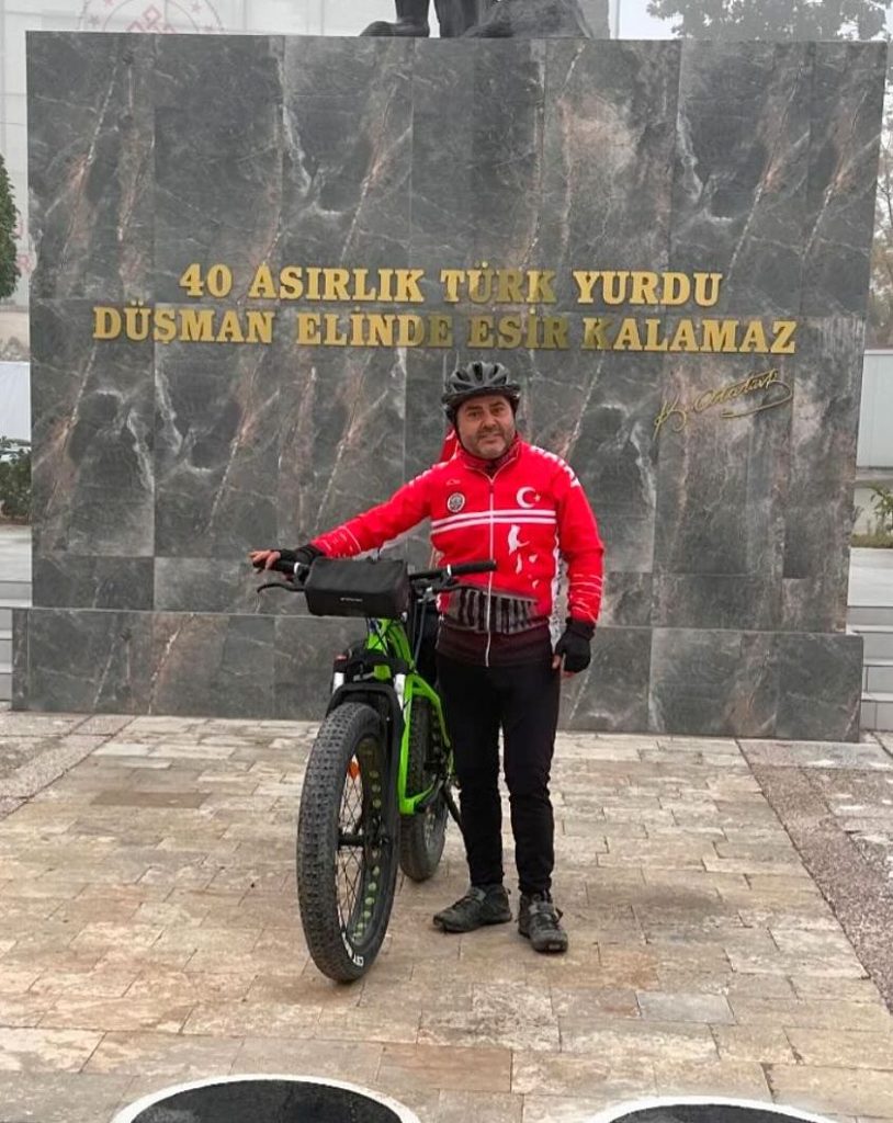 Geçtiğimiz gün Atatürk Anıtı önünde gerçekleştirilen programla Anıtkabir’e uğurlanan usta bisikletçi Ethem Baklacı, 580 kilometrelik zorlu parkuru 5 günde tamamlayarak, 10 Kasım sabahı Ata’nın huzurunda olmayı hedefliyor. Antakya’dan teslim aldığı Türk Bayrağını, Anıtkabir’de Ulu Önder Mustafa Kemal Atatürk’ün mozolesine gururla bırakmayı amaçlayan Baklacı, bu anlamlı yolculuğa büyük bir heyecanla başladı.