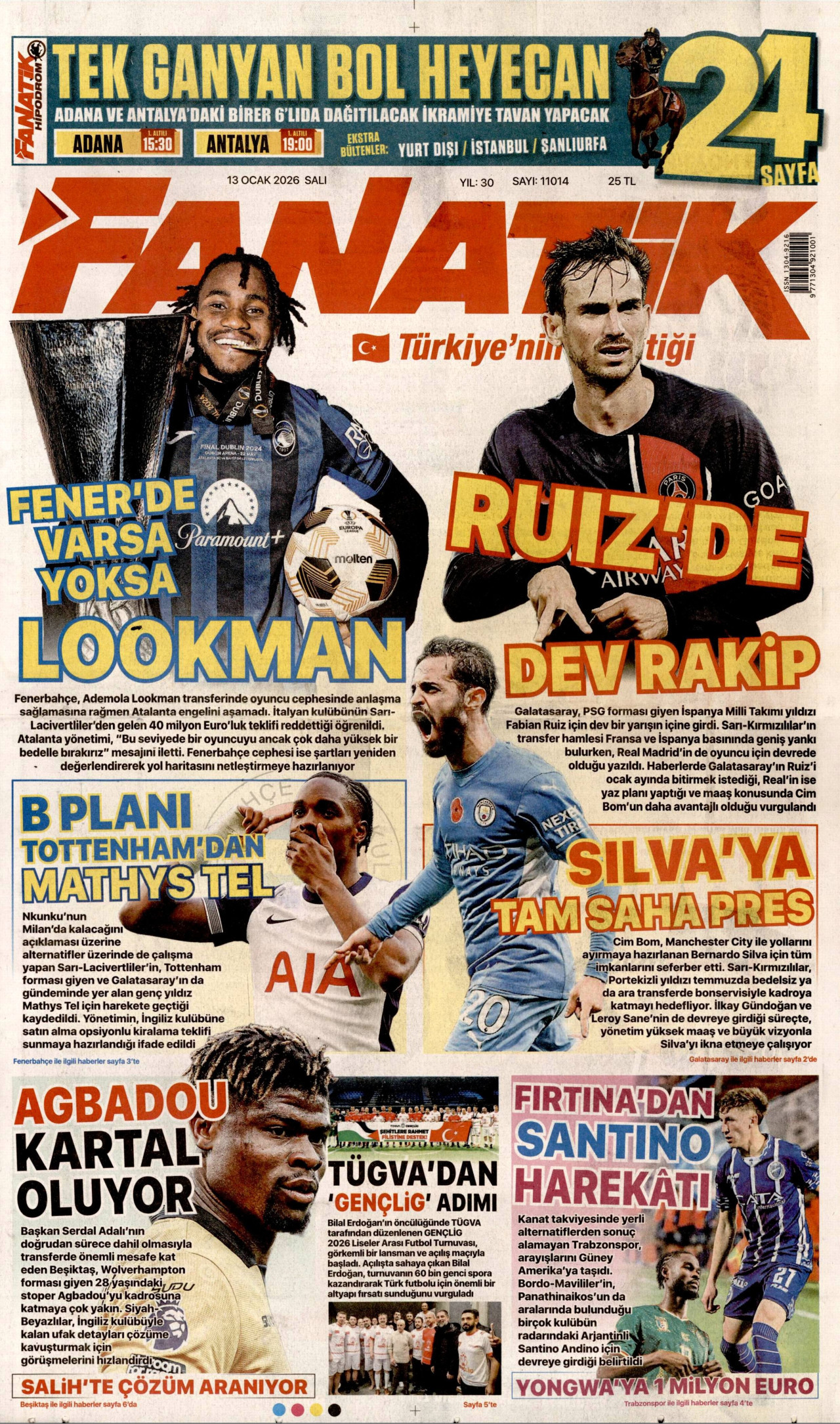 13 Ocak 2026, Salı Günü Manşeti