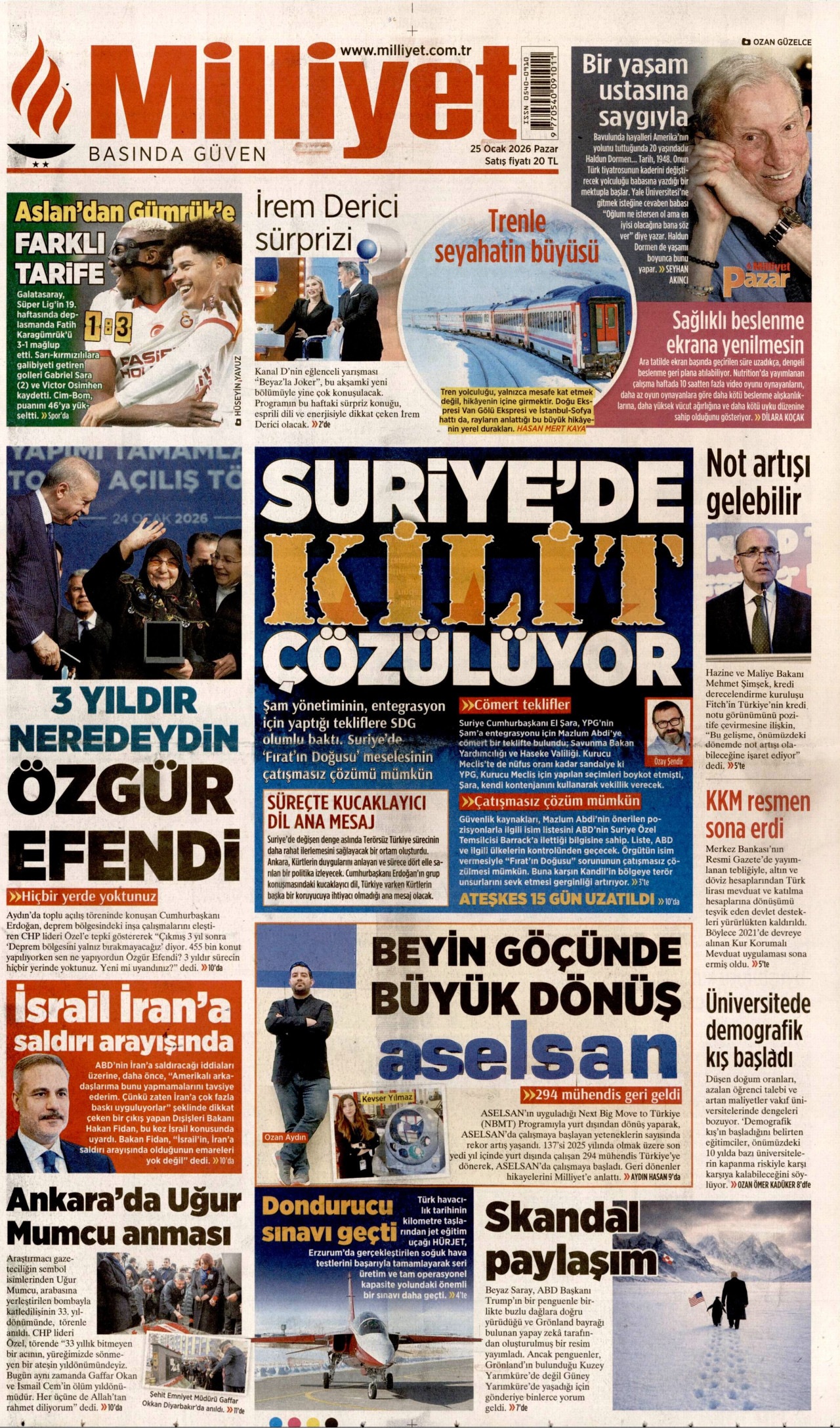 MİLLİYET Gazetesi 25 Ocak 2026, Pazar Günü Manşeti