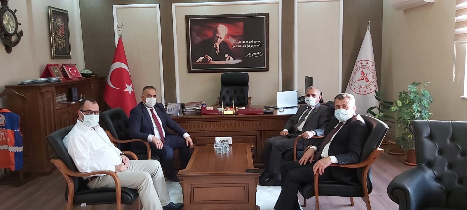 Hatay Milletvekili aynı zamanda AK Parti Yerel Yönetimler Başkan Yardımcısı Sayın Hüseyin ŞANVERDİ, Reyhanlı Belediye Başkanı Sayın Mehmet HACIOĞLU ve Altınözü Belediye Başkanı Sayın Rıfat SARI, İl Sağlık Müdürü Dr. Mustafa HAMBOLAT’ı makamında ziyaret ettiler.
