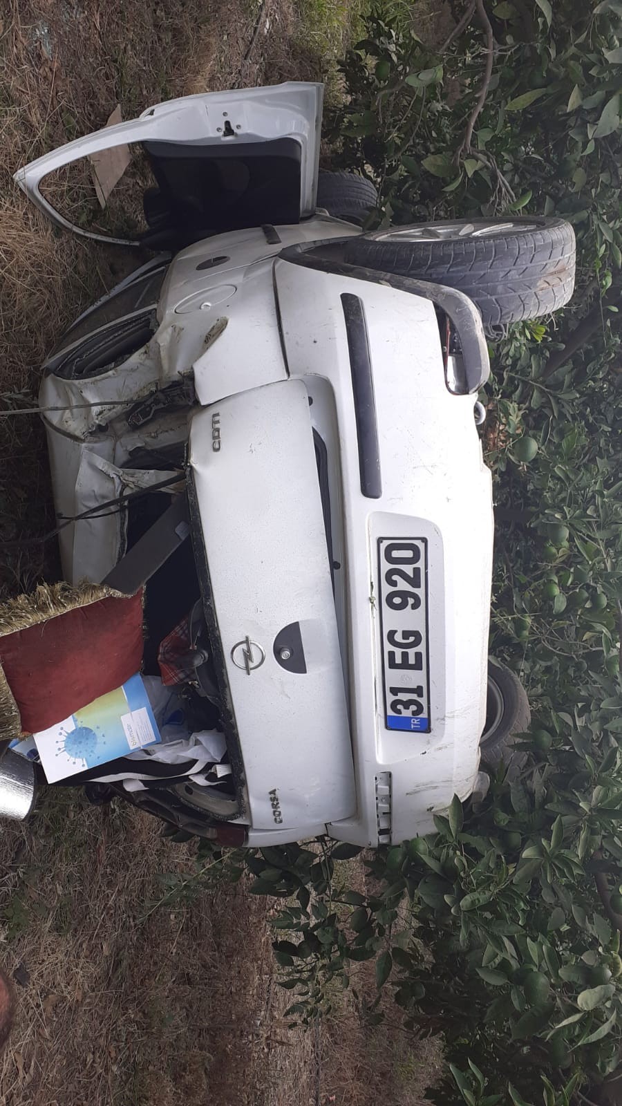 Hatay’ın Samandağ ilçesinde direksiyon hakimiyeti kaybolan bir otomobil, bahçeye uçtu.