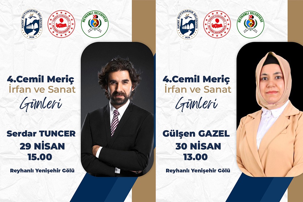 Hatay Büyükşehir Belediyesi (HBB), Reyhanlı Belediyesi ve Reyhanlı Kaymakamlığı iş birliğinde, her yıl büyük ilgi gören Geleneksel Cemil Meriç İrfan ve Sanat Günleri “4. Geleneksel Cemil Meriç İrfan ve Sanat Günleri” olarak bu yıl da birbirinden farklı sanatçılara ve sürpriz konuklara ev sahipliği yapacak.