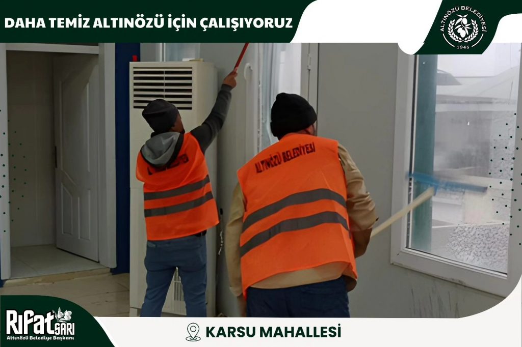 Altınözü Belediye Başkanı Rıfat Sarı, belediye ekiplerinin ilçedeki temizlik çalışmalarını titizlikle sürdürdüğünü belirtti. Başkan Sarı, yaptığı açıklamada, Karsu Mahallesi’nde bulunan çok amaçlı düğün salonunda gerçekleştirilen temizlik çalışmaları hakkında bilgi verdi.