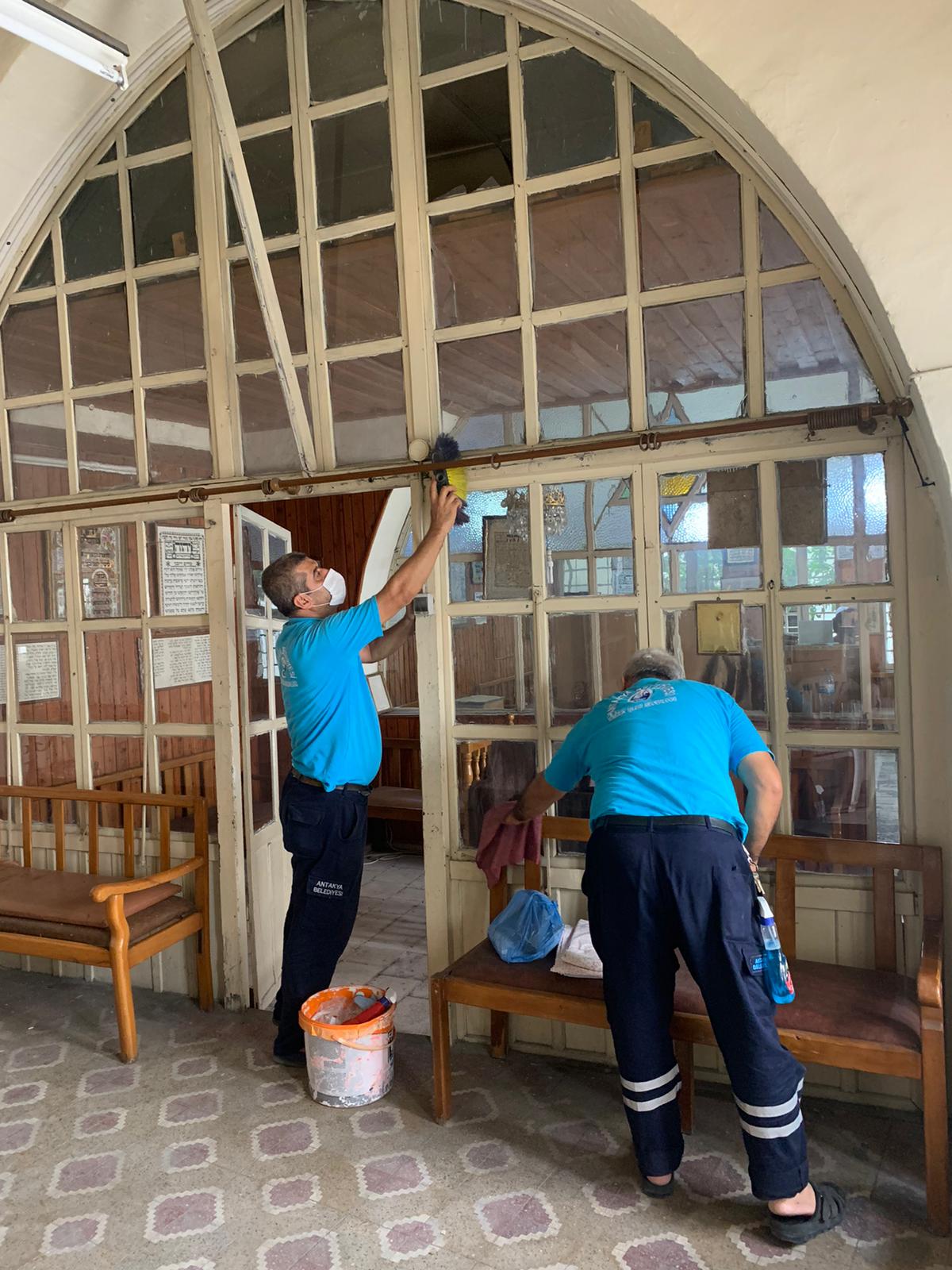 Antakya Belediyesi Temizlik İşleri Müdürlüğü ekipleri sosyal belediyecilik kapsamında şehir genelinde bulunan cami, türbe, ziyaret, kilise ve havra gibi ibadethanelerde temizlik çalışmalarını sürdürüyor.